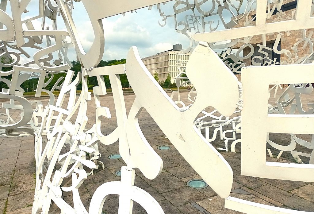 About 20 yards away is another intriguing work symbolising the open-mindedness and exchange of ideas in the city, and in particular its university: the ‘Body of Knowledge’, created by Spanish artist James Plensa in 2010 and composed of letters from different alphabets.